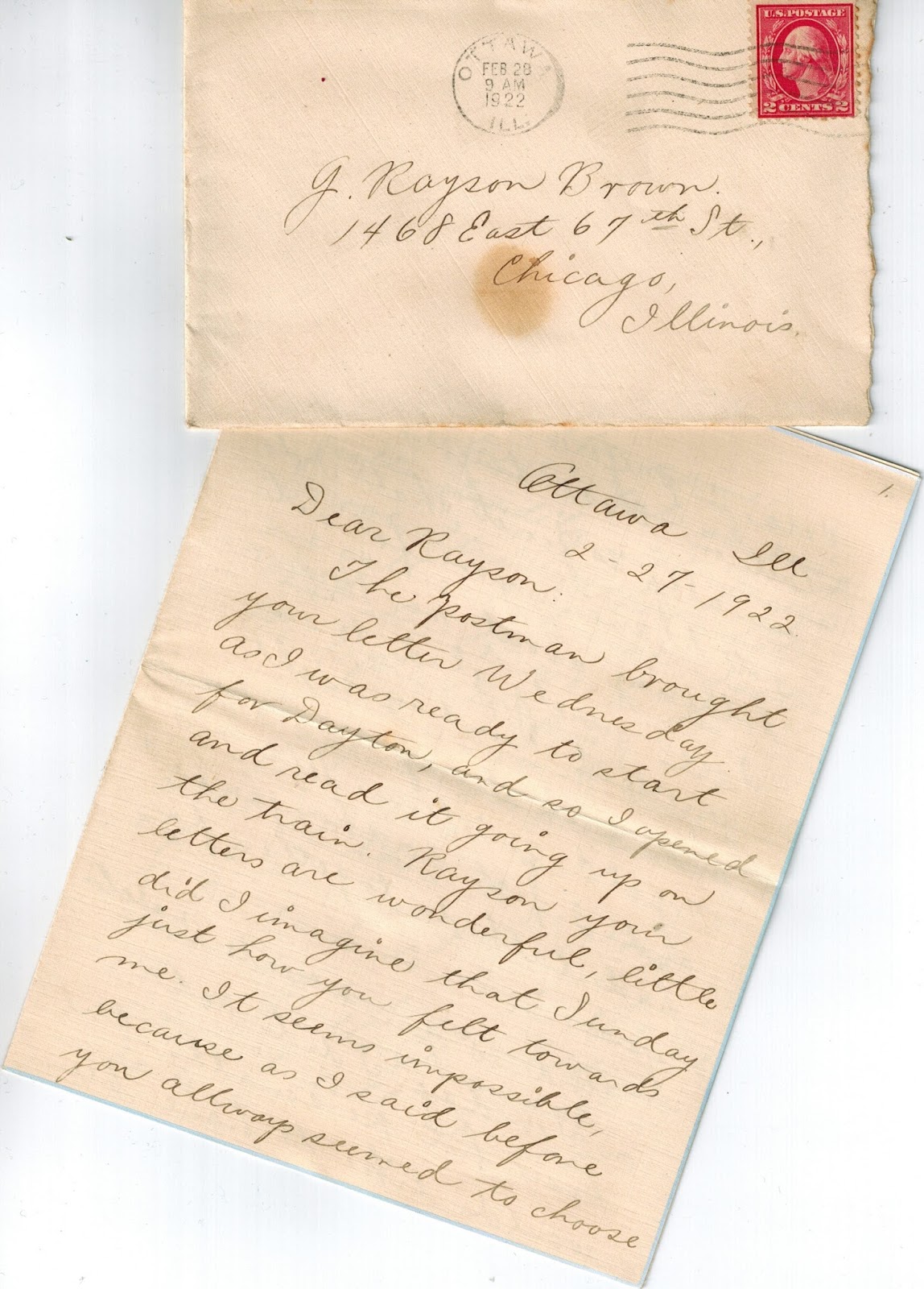 The postman brought your letter Wednesday as I was ready to start for Dayton, and so I opened and read it going up on the train. Rayson your letters are wonderful, little did I imagine that Sunday just how you felt towards me. It seems impossible, because as I said before you allways seemed to choose Vera in preference to me. But in those days I was usually so quiet that I do not blame anyone for not bothering about me. However I was surely glad to see you that Sunday night and will always remember it. My old quietness left me and I felt as though we had talked together for years.
